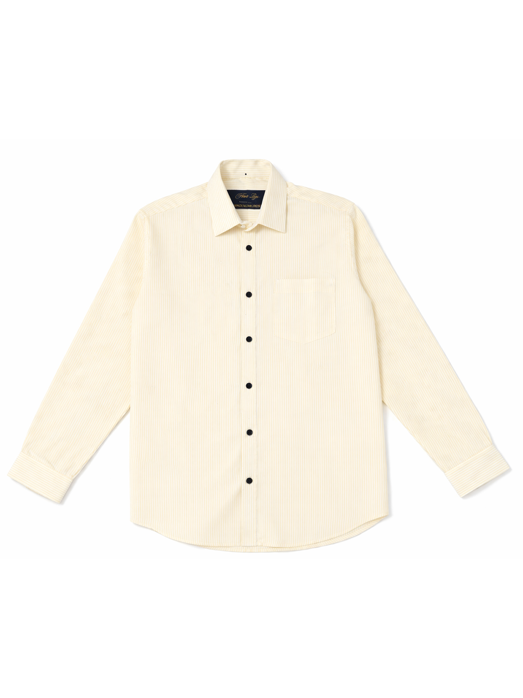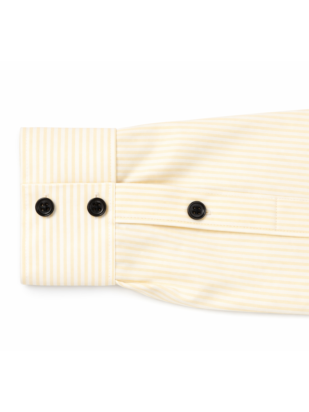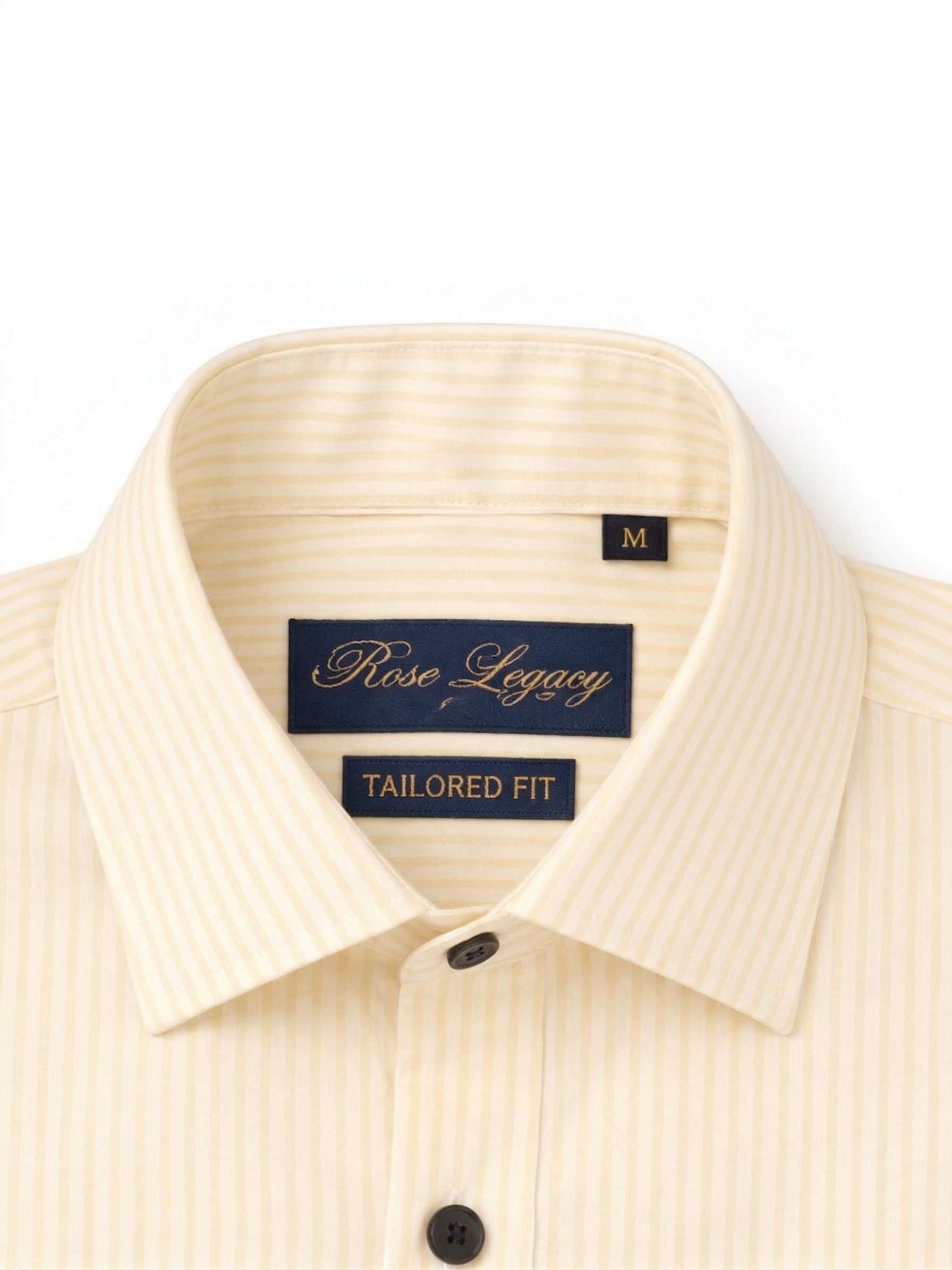 Add a warm, understated elegance to your wardrobe with this premium cream and yellow striped dress shirt from Rose Legacy. The subtle tonal stripe pattern in soft cream and pale yellow creates a refined, sophisticated look that stands out without overpowering.