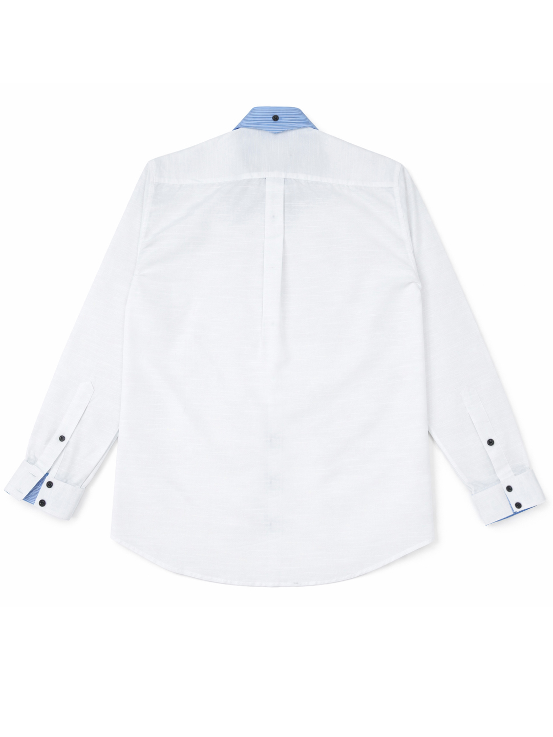 Men’s Premium White Dress Shirt with Blue Striped Inner Collar – Long SleeveMen’s Premium White Dress Shirt with Blue Striped Inner Collar – Long Sleeve